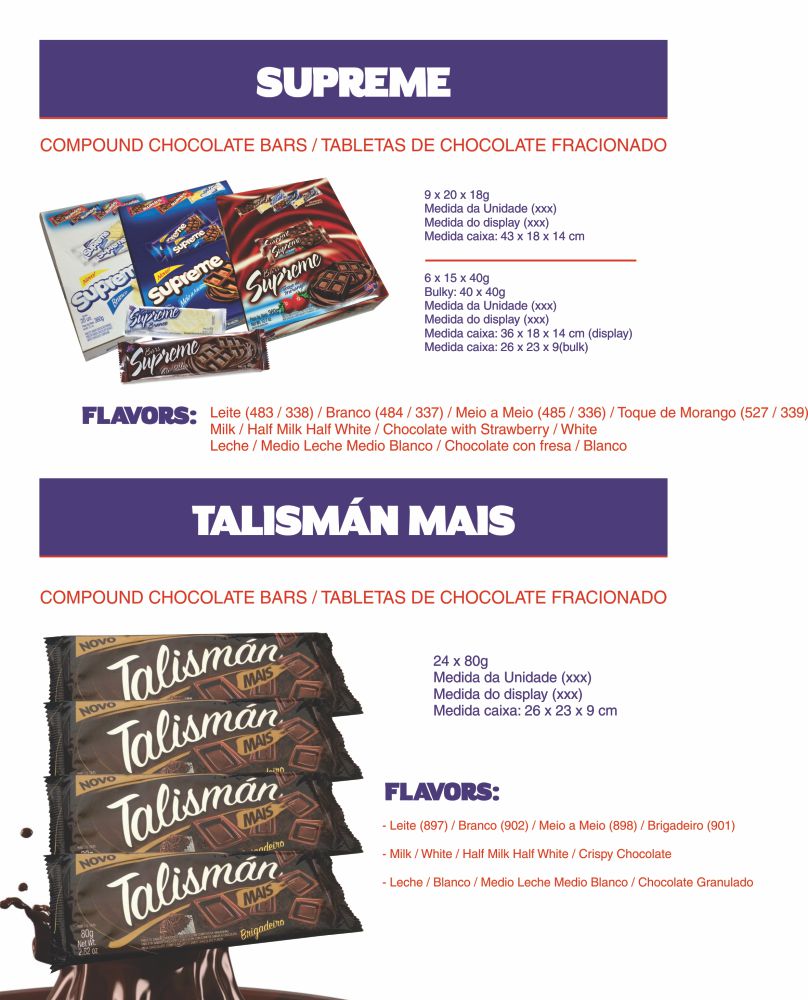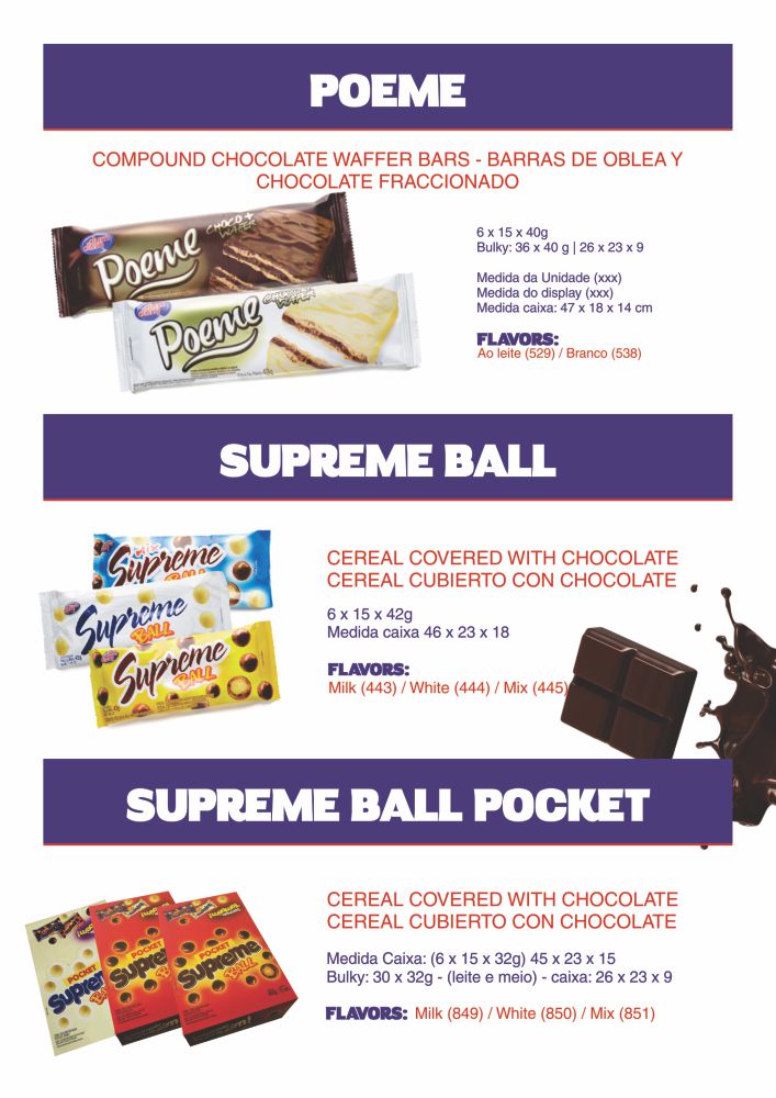 As marcas Dum Dum e Laciela representam uma ampla variedade de chocolates; desde chocolates fracionados de boa qualidade e competitivos em preço até os mais altos padrões para satisfazer os paladares mais exigentes.